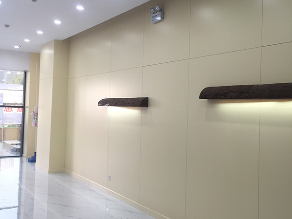 工程主要內容:大廳輕鋼龍骨石膏板吊頂;墻面成品烤漆板定制安裝;墻面干掛石材;地面鋪設瓷磚;吧臺制作;電梯口石材門套;及強弱電等項目。